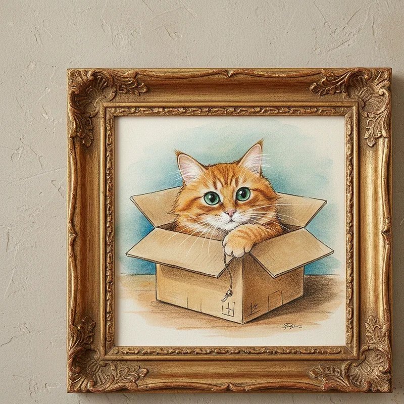 Cats and boxes share an unexplainable bond that makes for absolutely charming drawings. Sketch a cardboard box with your cat's head and paws peeking out, eyes wide with curiosity. The contrast between the geometric box shapes and the soft, organic curves of the cat creates visual interest. Pay special attention to the eyes, making them large and inquisitive to capture that "what's happening out there" expression. You can add whiskers pointing forward to emphasize the curious mood. Include small details like the box flaps and perhaps some scattered packing materials around it. This composition works wonderfully because it tells a story everyone recognizes, that irresistible feline attraction to any available box, making your artwork instantly relatable and smile-inducing.