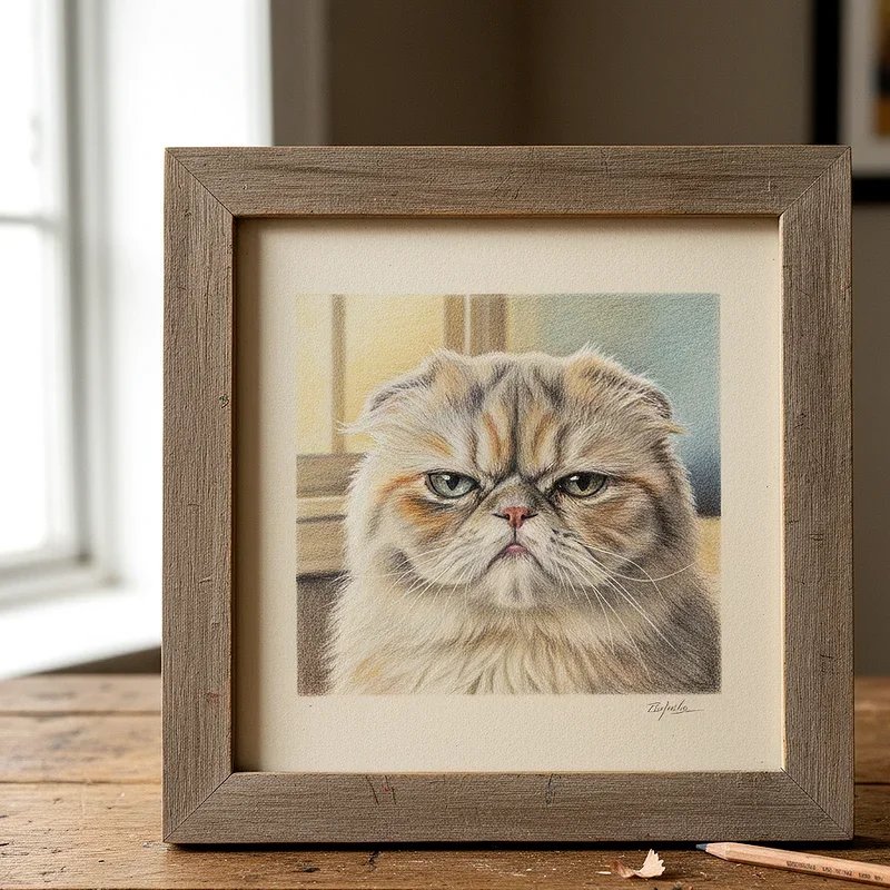 Sometimes the most endearing cat drawings capture that famously unimpressed feline attitude. Focus closely on facial features to create that perfect grumpy expression everyone recognizes. Draw downturned eyes with heavy lids, a small frowning mouth, and perhaps flattened ears to emphasize the mood. The key lies in subtle details like furrowed brows and a slightly scrunched nose. This close-up portrait style lets you practice facial anatomy and expression without worrying about full-body proportions. Adding some fluffy, unkempt fur around the face enhances the grumpy character. This drawing resonates with cat owners everywhere who've experienced their pet's judgmental stares. The grumpy expression provides comedic value while challenging you to convey emotion through minimal features and careful line placement.