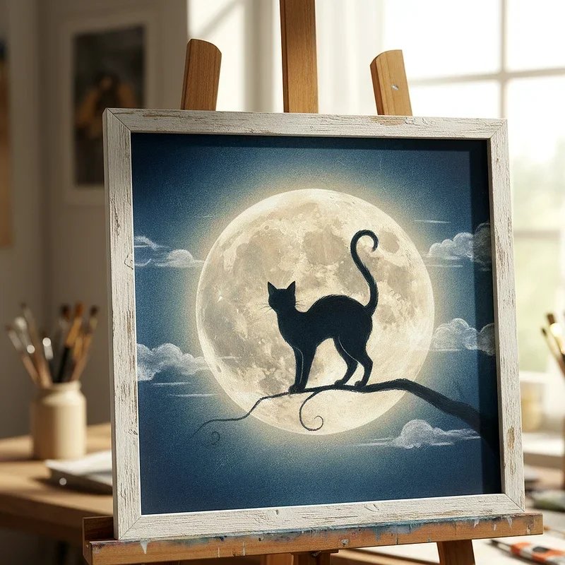 Creating a silhouette scene focuses on shape and composition rather than detailed features. Draw a cat's profile sitting on a fence or rooftop with a large full moon behind it. The stark contrast between the black cat shape and the bright moon creates dramatic visual impact. Pay careful attention to the outline, ensuring the cat's distinctive shape reads clearly even without interior details. Add some architectural elements like chimney tops or tree branches to establish the nighttime setting. You can include stars scattered across the sky for additional atmosphere. This drawing style works beautifully in ink or digital art and teaches you about negative space and composition. The mysterious, nocturnal mood appeals to both cat lovers and art enthusiasts alike.