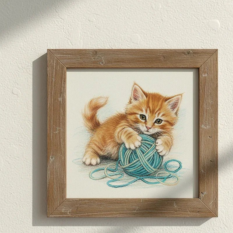 Nothing embodies feline playfulness quite like a kitten tangled up with a ball of yarn. This classic scene lets you explore dynamic poses and expressions of pure joy. Begin by positioning your kitten in a playful crouch or mid-pounce stance, with one paw extended toward the yarn. The yarn itself offers fantastic opportunities for adding movement through curved, flowing lines that weave around your subject. Capture the kitten's wide-eyed excitement and slightly open mouth to convey that irresistible playful energy. Don't forget those tiny details like extended claws and perked ears that signal hunting mode. This drawing teaches you about action poses while keeping the subject absolutely adorable and relatable to anyone who's watched kittens play.