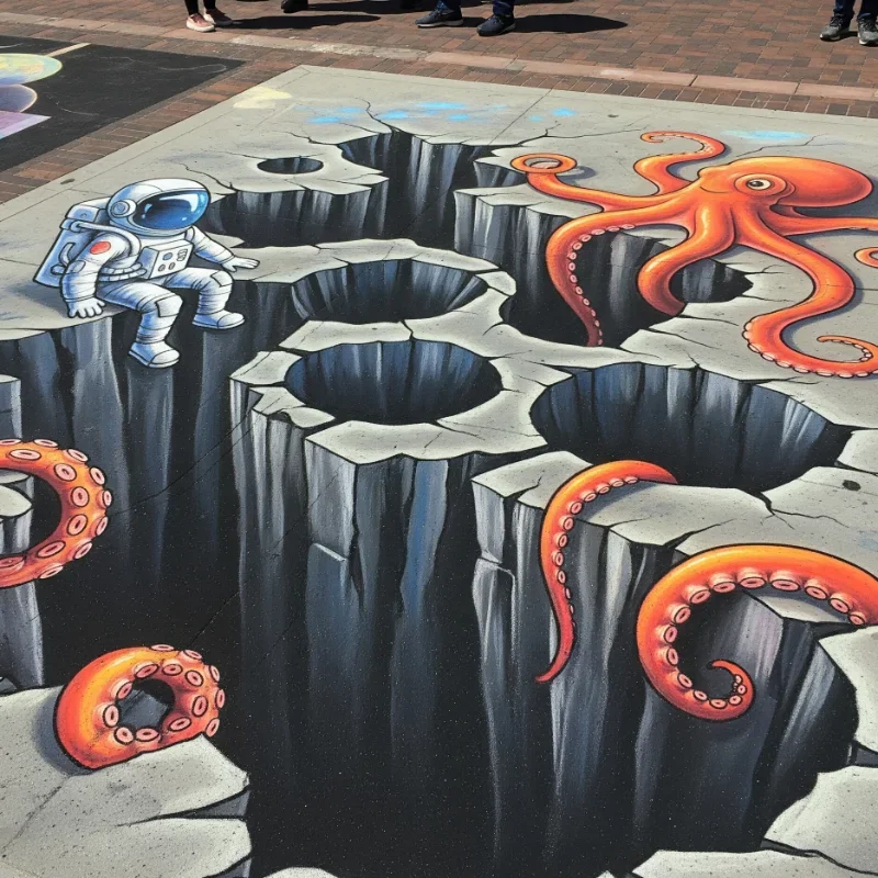Want to make people do a double-take? Creating 3D holes in your sidewalk is easier than you think! Start with a simple oval shape, then add depth using shading techniques. Dark colors at the "bottom" and lighter shades near the "opening" create that stomach-dropping effect. Add realistic details like ladder rungs disappearing into darkness, water at the bottom, or even cartoon characters climbing out. The key is perspective: make the far edge smaller than the near edge. Include cracks radiating from the hole's edges for extra realism. Position these illusions where people naturally walk for maximum surprise factor. Kids love pretending to fall in while adults appreciate the artistic skill. Pro tip: take photos from the correct angle to capture the full 3D effect for social media. These conversation starters turn ordinary walkways into adventure zones!
