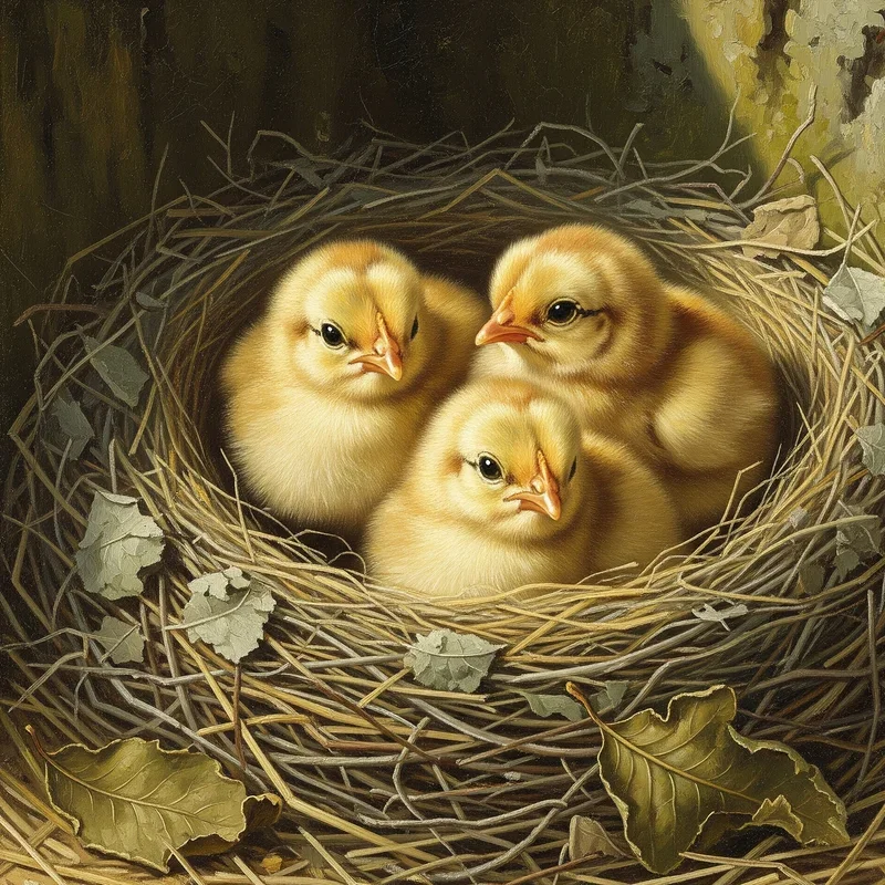 There's something irresistibly adorable about drawing fluffy baby chicks nestled together in their cozy home. Begin by creating a rough, circular nest shape using overlapping lines to suggest twigs and straw. Place your chicks inside, using simple circles and ovals to build their basic forms. The key to making them look genuinely fluffy is layering short, soft strokes that radiate outward from their bodies. Give each chick its own personality through different head positions and expressions. Maybe one's chirping with its beak wide open while another peeps curiously over the nest's edge. Add small details like tiny wings, orange beaks, and beady eyes to bring them to life. The contrast between the rough nest texture and the soft chicks creates visual interest that makes this drawing truly captivating.
