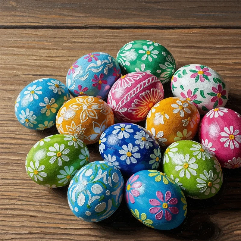Drawing a collection of decorated Easter eggs lets you explore endless pattern possibilities and color combinations. Start by sketching various egg shapes at different angles to create visual interest in your composition. Each egg becomes a tiny canvas where you can experiment with zigzags, polka dots, stripes, flowers, and geometric designs. Think about how different patterns interact when placed side by side, creating rhythm and movement across your page. You might include traditional Ukrainian pysanky patterns for cultural richness, or invent your own whimsical designs featuring springtime motifs. Consider adding shadows beneath each egg to ground them on the surface, and highlights to suggest their smooth, glossy shells. This drawing idea works beautifully with any medium, from simple pencil sketches to vibrant colored pencil or marker illustrations.