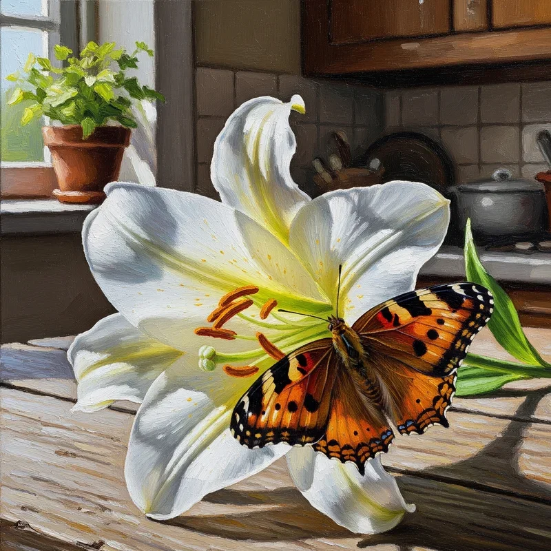 Combining the delicate beauty of butterflies with elegant Easter lilies creates a sophisticated drawing celebrating nature's spring transformation. Begin by carefully studying the lily's trumpet-shaped blooms, noting how petals curve and overlap. Position one or more butterflies interacting with the flowers, perhaps landing on a petal or hovering nearby. Pay attention to the butterfly's wing patterns, using symmetry to create balanced, intricate designs. The lily's long, slender leaves provide interesting linear elements that contrast with the rounded flower forms and butterfly wings. Consider how light affects both subjects, creating shadows within the lily's trumpet and making butterfly wings appear translucent. This drawing idea combines botanical accuracy with artistic interpretation, resulting in an elegant composition that symbolizes resurrection and new life.