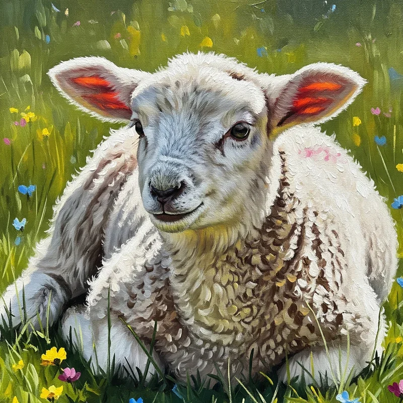 A fluffy lamb grazing in a spring meadow captures innocence and renewal associated with the Easter season perfectly. Start with basic shapes to establish the lamb's proportions, then build up its woolly texture using circular, scribbling motions that suggest soft, curly fleece. Position your lamb in a meadow dotted with wildflowers and fresh grass, creating a peaceful pastoral scene. Consider the lamb's expression, perhaps giving it a gentle, curious look as it gazes at a butterfly or flower. Add details like tiny hooves, a pink nose, and expressive eyes that bring personality to your drawing. The surrounding meadow offers opportunities to practice drawing various plants and flowers, while the lamb itself helps you master the challenging technique of rendering fluffy, textured surfaces convincingly.