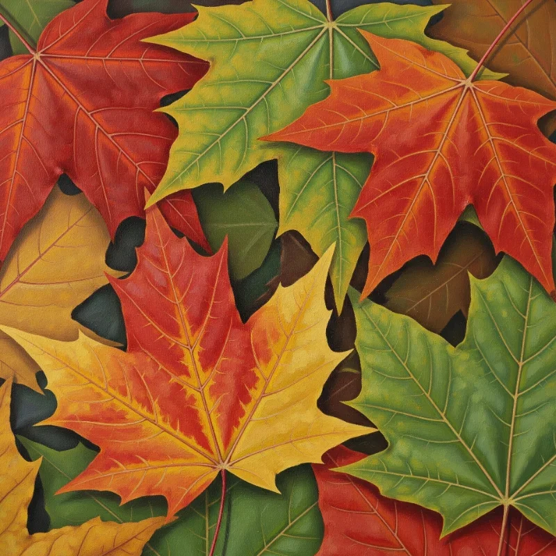 Sometimes the smallest subjects make the biggest impact! Painting maple leaves up close lets you explore fall's incredible color palette in intimate detail. Choose leaves in various stages of change: some still green at the edges, others fully transformed to blazing reds and oranges. Paint the veins first with thin brushwork, as they provide the leaf's structure. Build color in layers, starting with base tones and adding variations where chlorophyll is breaking down differently. Don't make leaves uniformly colored; nature never does! Add spots, speckles, and gradual color transitions. Create interest by showing different angles: some leaves curling at edges, others laying flat, maybe one caught mid-fall. Water droplets from morning dew add sparkle and life. Include cast shadows to ground floating leaves. This exercise teaches color mixing and observation while creating frame-worthy art from nature's simplest treasures!