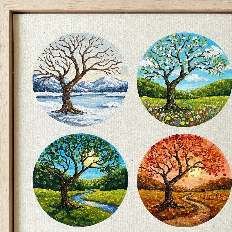 Painting trees through different seasons provides an excellent study in how gouache can capture diverse textures, from spring's delicate blossoms to winter's bare branches against snow. Each season offers unique challenges and opportunities to explore different techniques within a consistent subject matter framework. Spring trees might feature light, dotted brushwork for cherry blossoms, while autumn calls for rich, layered oranges and reds applied with palette knives or sponges. Summer's full foliage lets you practice creating volume through value changes, and winter scenes showcase gouache's ability to paint convincing snow and frost effects. This series develops your versatility with the medium while creating a cohesive body of work that documents nature's cycles.