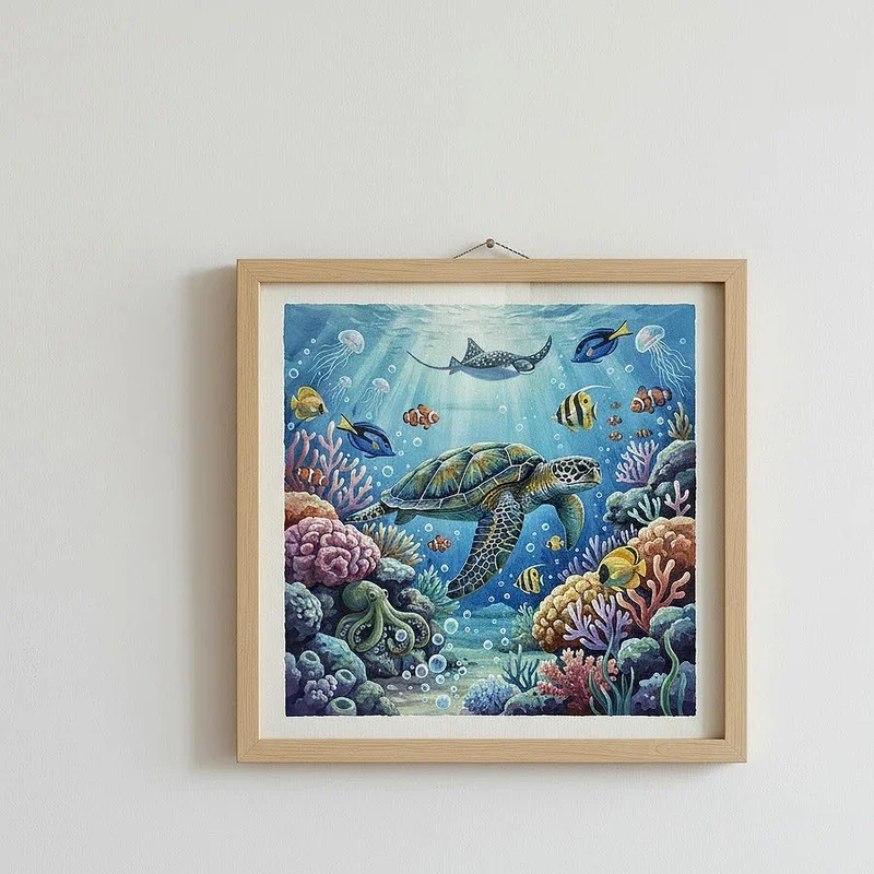 Underwater paintings showcase gouache's ability to create both translucent, watery effects and vibrant, opaque sea creatures within the same composition. Begin with flowing, diluted washes to establish your aquatic environment, using blues and greens that shift in value and temperature to suggest depth. Layer in coral reefs, seaweed, and marine animals using more concentrated gouache, taking advantage of its opacity to make subjects stand out against darker backgrounds. The medium perfectly captures the play of filtered sunlight through water and the iridescent scales of tropical fish. These paintings teach you to balance loose, fluid techniques with precise detail work while exploring the rich color palette of ocean life.