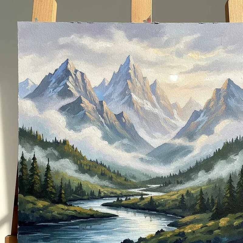 Mountain landscapes offer endless opportunities to explore atmospheric perspective using gouache's unique properties for creating depth and distance in your compositions. Start with pale, diluted washes for distant peaks, gradually increasing color intensity and detail as you move toward the foreground elements. Gouache allows you to paint light colors over dark, making it easy to add snow caps, mist, or dramatic lighting effects after establishing your basic mountain shapes. The medium's versatility lets you capture everything from serene alpine meadows to dramatic storm clouds rolling over jagged peaks. This subject teaches valuable lessons about color temperature, value progression, and how to create convincing spatial depth using overlapping forms and atmospheric effects.