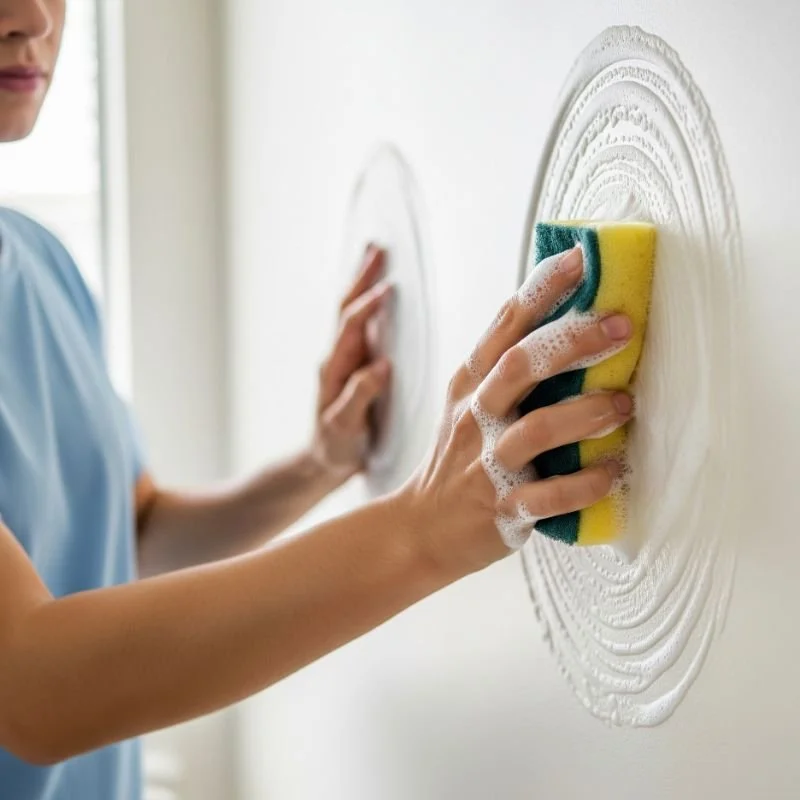 Work in sections, starting from the top of the wall and moving downward. This prevents dirty water from dripping onto already-cleaned areas. Use a damp (not soaking wet) sponge or microfiber cloth, and work in circular motions to lift dirt and grime.