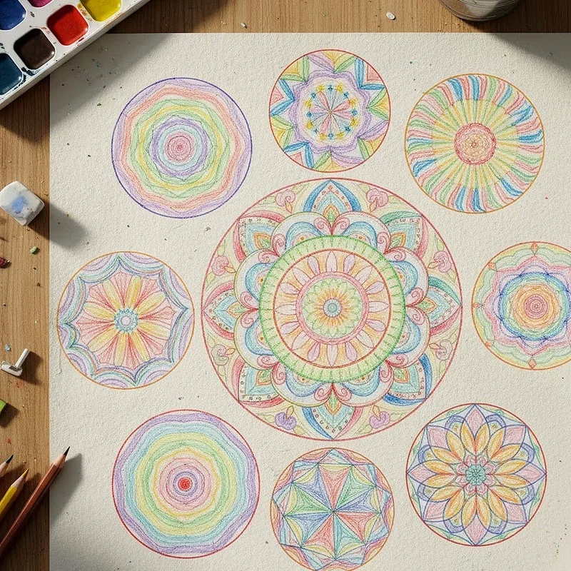 Creating simple mandalas introduces kids to the calming aspects of repetitive patterns while exploring color relationships and symmetry. Start with a central point and guide them to draw circles, triangles, hearts, or any shapes radiating outward in rainbow colors. This activity develops focus, patience, and fine motor control as children work on filling in their patterns with different colors and designs. Unlike complex adult mandalas, kid-friendly versions can include familiar objects like stars, flowers, or even tiny drawings of their favorite things arranged in circular patterns. The meditative quality of creating mandalas helps restless children find a peaceful focus, while the rainbow element adds joy and vibrancy to their artwork. Each mandala becomes unique, reflecting the child's mood and creativity at that moment.