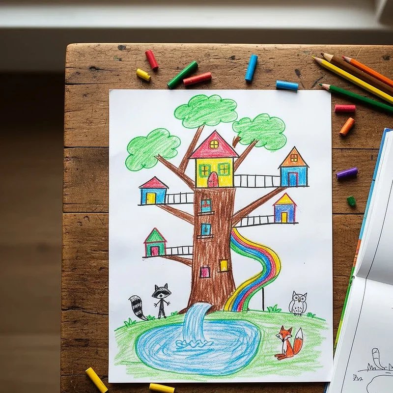 Every child dreams of having their own special hideaway, and drawing a dream treehouse lets them design it exactly how they want it. They might include rope ladders, zip lines between trees, secret compartments for treasures, or even an elevator made from a basket and pulley system. This drawing exercise teaches kids about architecture and spatial thinking while keeping things playful and imaginative. Encourage them to think about what rooms their treehouse would have, maybe a library nook, a telescope platform for stargazing, or a slide that spirals around the trunk. Adding details like bird neighbors, fairy lights, or a mailbox for receiving messages from woodland creatures makes the drawing more personal and story-rich. It's amazing how much personality emerges when kids design their perfect escape.