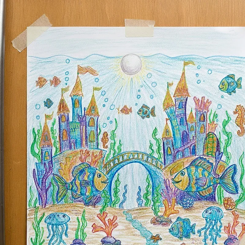 Who says mermaids and sea castles only exist in fairy tales? Encouraging kids to create their own underwater kingdoms opens up a world where physics takes a backseat to imagination. They can draw floating castles made of coral, schools of rainbow fish wearing tiny crowns, or octopuses serving tea at underwater parties. This drawing idea helps children think about different environments and how creatures might live differently beneath the waves. Adding elements like treasure chests, submarine explorers, or talking seahorses makes the scene even more engaging. The beauty of underwater drawings lies in their freedom from reality's constraints, allowing kids to experiment with wavy lines, bubble effects, and flowing movements that bring their aquatic worlds to life.