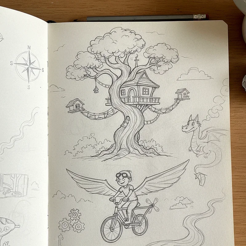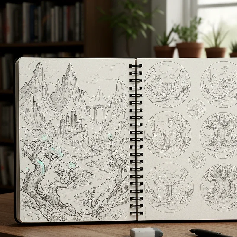 Let your imagination soar by creating fantasy landscapes that transport viewers to impossible worlds where floating islands, crystal forests, and dragon cities exist. Your notebook becomes a portal to realms limited only by your creativity, where traditional rules of physics and geography don't apply. Start with basic landscape elements like horizons and focal points, then add fantastical elements that transform ordinary scenes into extraordinary vistas. Combine realistic drawing techniques with imaginative elements, creating believable yet impossible worlds that invite exploration and spark storytelling possibilities. Experiment with unusual perspectives, like viewing landscapes from below clouds or through magical portals that reveal multiple dimensions simultaneously. These drawings exercise both technical skills and creative thinking, teaching you composition, depth, and atmosphere while encouraging unlimited imaginative expression.