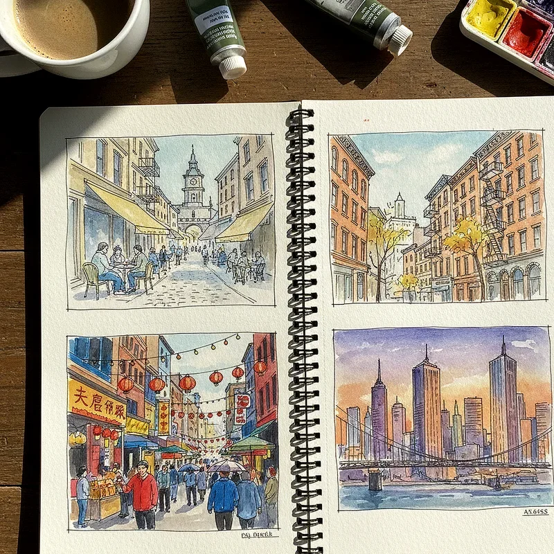 Urban sketching transforms everyday city scenes into artistic treasures, turning your notebook into a visual diary of the places you visit and explore. Capture the energy of busy streets, the charm of old buildings, or the quiet corners of urban parks where city life slows down momentarily. Your sketches don't need architectural precision; they should convey the atmosphere and character that make each location special to you. Sit at a coffee shop window and sketch the street scene, or find a bench in a plaza to capture the surrounding architecture. Urban sketching teaches you to work quickly, capturing essential details while embracing the imperfections that come with drawing on location. These sketches become precious memories, preserving not just images but the feelings and experiences of being in those spaces.