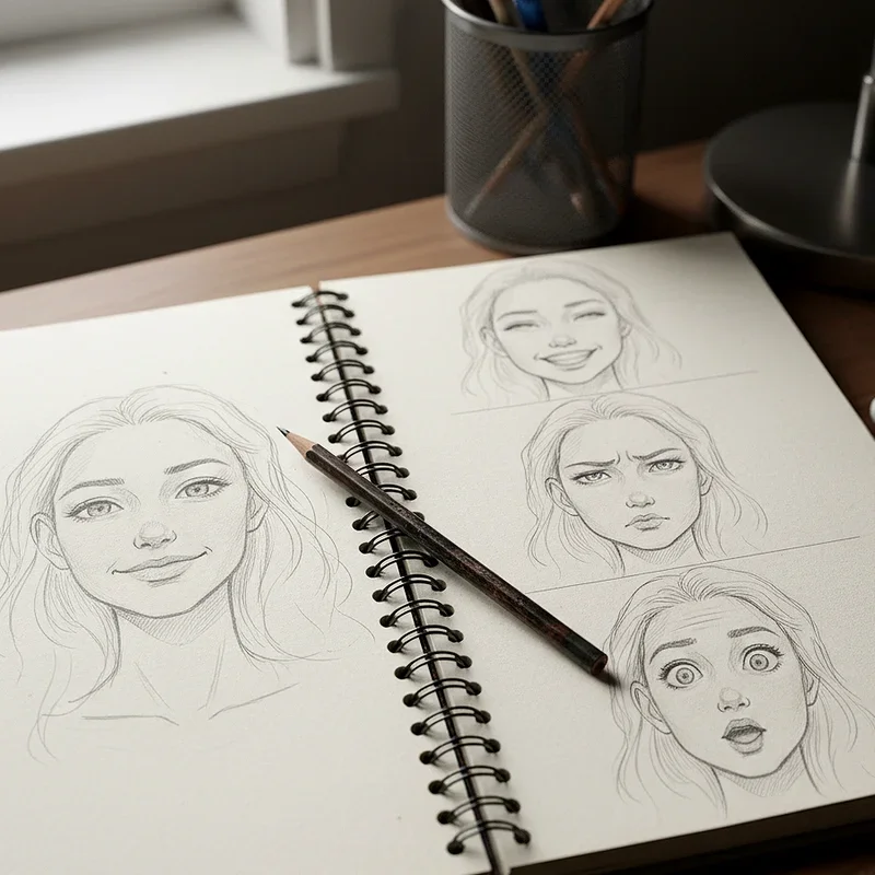 Mastering facial expressions in your notebook opens doors to capturing human emotion and telling stories through art without using a single word. Start by drawing basic face shapes, then experiment with how eyebrows, eyes, and mouth positions dramatically change the entire mood of your portrait. You can use yourself as a model with a mirror, reference photos, or observe people in cafes and parks for authentic expressions. Each face tells a story, whether it's joy, contemplation, surprise, or melancholy, and your notebook becomes a gallery of human experience. Don't worry about achieving photorealistic results; focus on capturing the essence of each expression and what makes it unique. Regular portrait practice develops your ability to convey personality and emotion, skills valuable in any artistic endeavor you pursue.