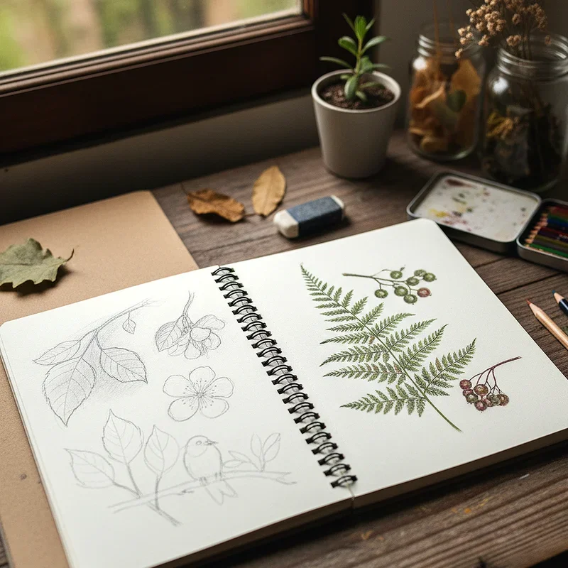 Bringing the outdoors into your notebook through nature studies connects you with the world around you while sharpening your observational skills. Pick a leaf from your garden, a flower from the park, or even observe the clouds drifting by your window, then capture their essence on paper. Nature provides endless subjects with varying textures, shapes, and details that challenge you to look closer and draw more mindfully. You don't need to venture far; even a simple houseplant offers complex forms worth exploring through sketching. Pay attention to how light falls on petals, how stems curve naturally, and how leaves display their intricate vein patterns. These studies teach you about form, shadow, and the subtle imperfections that make natural subjects so captivating and authentic.