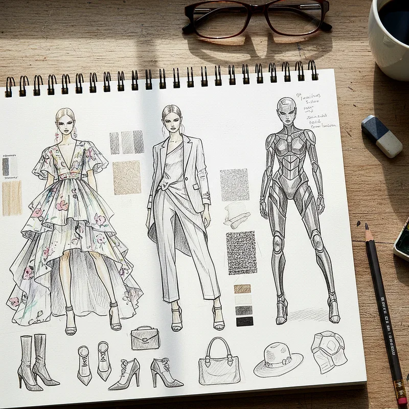 Your notebook transforms into a fashion runway where clothing ideas come to life through dynamic figure drawings and detailed garment illustrations that express style and creativity. Start with basic fashion figure proportions, which differ from realistic anatomy to better showcase clothing designs and create elegant, stylized presentations. Experiment with different fabrics through shading and line techniques, showing how materials drape, fold, and move with the body's natural curves and angles. Create complete outfits or focus on specific garments, adding notes about colors, textures, and construction details that bring your designs closer to reality. You don't need to be a fashion designer to enjoy this; it's about exploring personal style and understanding how clothing creates character and mood. Fashion sketching improves your understanding of human proportions while encouraging creative thinking about form, function, and artistic expression through wearable art.