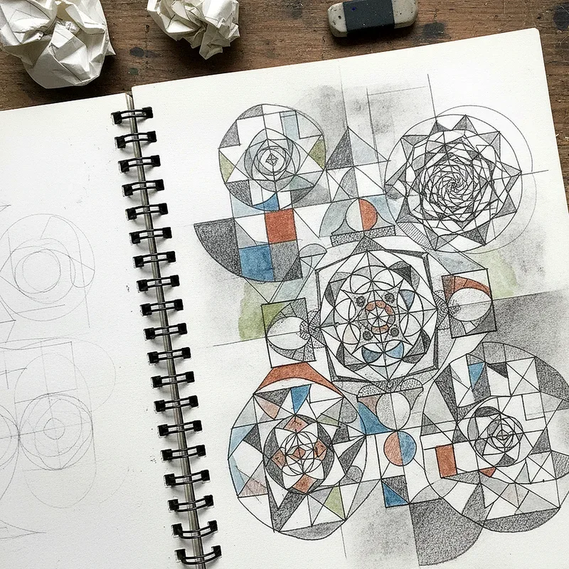 Diving into abstract geometric designs liberates your creativity from the constraints of realistic representation, allowing pure expression through shapes, lines, and mathematical beauty. Start with basic geometric forms like triangles, hexagons, or circles, then layer, intersect, and transform them into complex compositions that please the eye. These designs can be precisely measured with rulers and compasses or drawn freehand for a more organic feel within geometric constraints. You'll discover how negative space becomes as important as the shapes themselves, creating visual rhythm and balance across your notebook pages. Experiment with different shading techniques, patterns within shapes, or color combinations if you're using colored pencils or markers. Abstract geometric art trains your brain to think spatially and compositionally, skills that enhance all other forms of artistic expression you explore.
