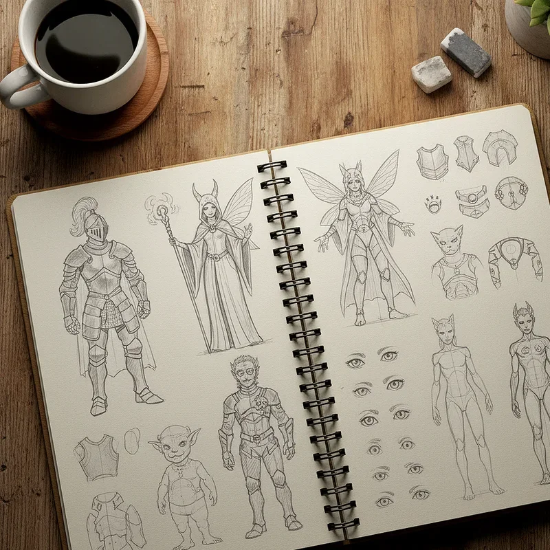 Your notebook becomes a character laboratory where personalities come to life through iterative design and creative experimentation with forms, features, and distinctive traits. Start with basic shapes for bodies and heads, then add unique characteristics that define each character's personality, background, and role in their imaginary world. Create character sheets showing different angles, expressions, and outfit variations, building a comprehensive understanding of your creations beyond single static poses. Whether designing realistic humans, anthropomorphic animals, or fantastical creatures, each character develops through multiple sketches that refine their appearance and story. Consider their posture, clothing style, and small details like accessories that hint at their interests, occupation, or magical abilities. Character design strengthens your storytelling abilities and helps you understand how visual elements communicate personality traits without words.