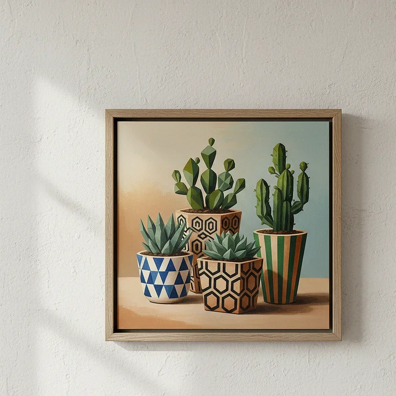 Succulent themed illustrations celebrate these trendy plants through painted imagery that coordinates beautifully with actual succulent plantings inside. You can paint realistic botanical illustrations showing specific succulent varieties or stylized graphic interpretations with simplified shapes and forms. Consider painting echeveria rosettes, trailing string of pearls, geometric aloe patterns, or clustered sempervivum arrangements directly onto pot surfaces. These illustrations work particularly well in monochromatic or limited color palettes that let the painted imagery shine without overwhelming real plants. You might paint just one large succulent specimen as a focal point or create repeating patterns of small succulents around the pot's circumference. This meta approach of painting plants on plant containers creates clever, thoughtful designs that demonstrate attention to detail and appreciation for botanical beauty in all its forms.