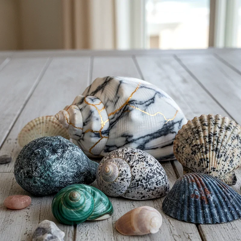 Master the art of making shells look like precious stones through marble painting techniques that create swirling patterns reminiscent of agate, turquoise, or jade. Using paint pouring methods or careful blending with sponges, you can achieve organic patterns that look like they took millions of years to form rather than an afternoon to paint. The key lies in choosing colors that naturally occur in stones and allowing them to flow and mix without overworking the design. These faux stone shells add an element of luxury to your coastal decor, looking especially stunning when displayed with actual stones and crystals. Create entire collections mimicking different minerals, turning your shelf into a beachcomber's geological treasure trove.