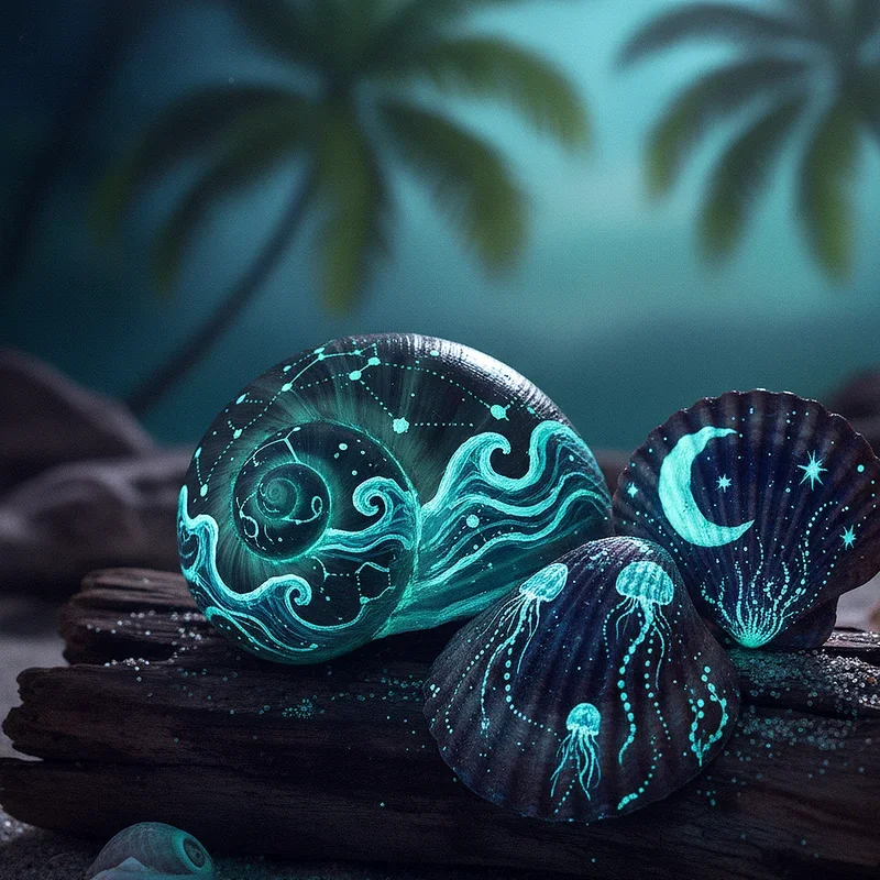 Add an element of magic to your coastal decor with shells that come alive after dark, painted with special phosphorescent paints that charge in daylight and glow when lights go out. Create constellation patterns, moon phases, or bioluminescent plankton effects that mirror nature's own light shows found in certain ocean waters. The surprise element delights guests who discover your seemingly ordinary shells transform into glowing treasures when darkness falls. Layer glow paint over regular designs for dual personality pieces that look stunning day and night. These luminous shells work wonderfully in children's rooms as gentle nightlights or in outdoor spaces where they can absorb sunlight during the day and provide subtle ambiance during evening gatherings.