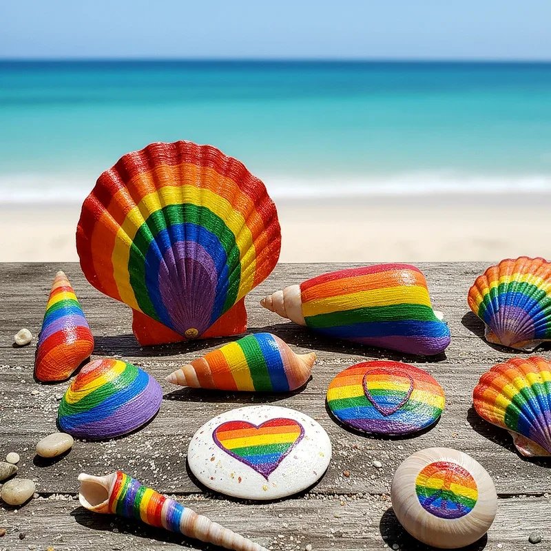 Celebrate diversity and love with rainbow-painted shells that add vibrant color and meaningful symbolism to your coastal decor. Whether creating traditional rainbow arcs or abstract interpretations using pride flag colors, these shells become powerful statements of acceptance and joy. The natural curves of many shells lend themselves perfectly to rainbow designs, allowing colors to flow naturally from one to another like a spectrum reflected in ocean spray. Consider creating sets that represent different pride flags, educating viewers while beautifying your space with meaningful art. These colorful creations make wonderful gifts for friends and family, spreading messages of love and support through the simple medium of painted shells.