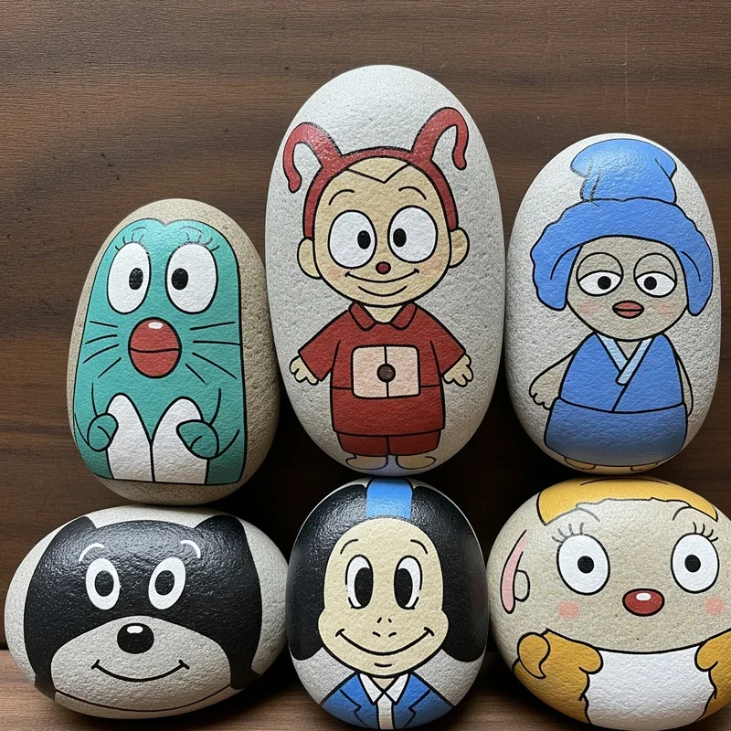 Character stones bring beloved animated friends to life through careful recreation of iconic features that capture personalities in miniature form perfect for collectors and gift-giving. Focus on distinctive elements like Mickey's ears, SpongeBob's square shape, or Pikachu's red cheeks that make characters instantly recognizable even on small surfaces. Use reference images to maintain proper proportions and color accuracy while adapting designs to fit each stone's unique contours and dimensions. These nostalgic pieces delight both children discovering favorite characters and adults revisiting childhood memories through artistic interpretation. Create themed collections featuring entire casts from popular shows or movies, displaying them together to tell visual stories that celebrate fandoms and shared cultural experiences across generations who connect through timeless characters.